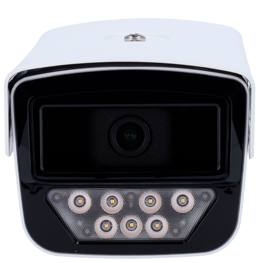 Cámara IP EasyProject tipo Bullet de 5 MP con lente fija de 4 mm, cuenta con tecnología Color Hunter con Wise-ISP para imágenes a color en cualquier entorno, SIP Lite y UMD. Tiene 7 bombillas blancas para lograr un alcance de hasta 50m en la oscuridad.